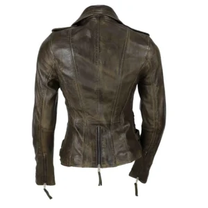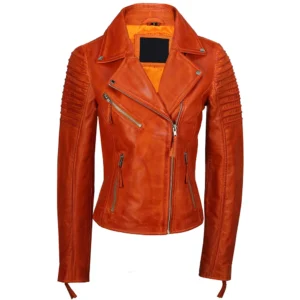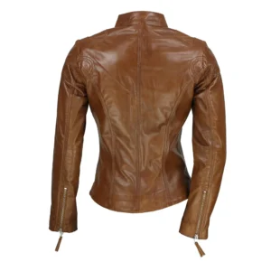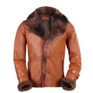 Material: 100% Real Lambskin Leather. Color: Cognac Brown / Beige Faux Fur Closure: Zippered front closure. Collar: Shirt style faux fur collar. Pockets: Two large