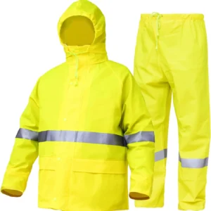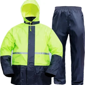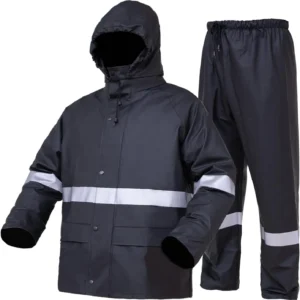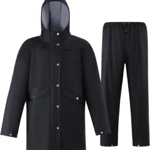 Made of high-quality 90% PU and 10% Polyester to protect from intense rainfall Features front zip with snap storm flap,