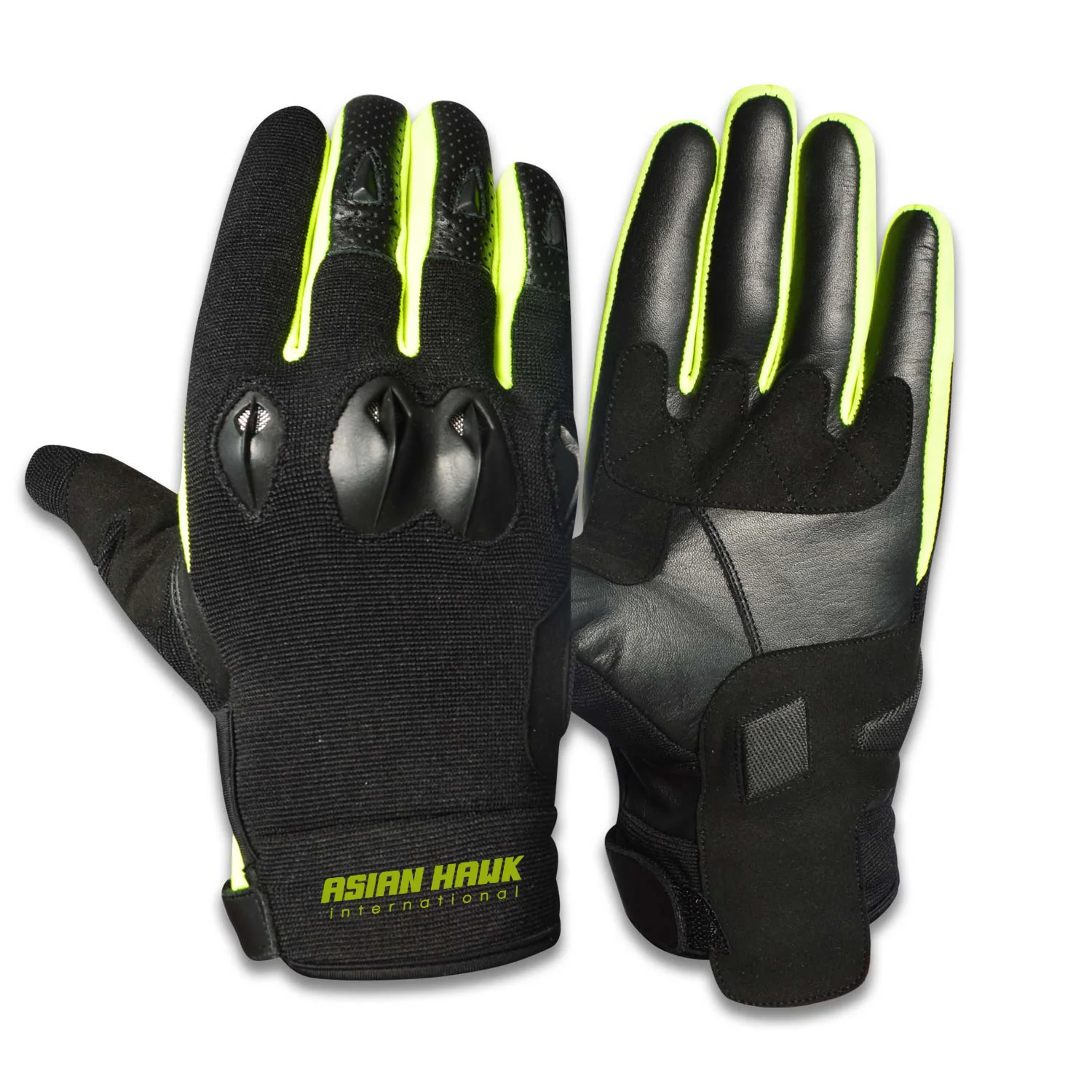 Motor Cross Glove. Palm side Cow hide leather with Synthetic leather reinforcement. Cardura fabric patch with rubber padding.